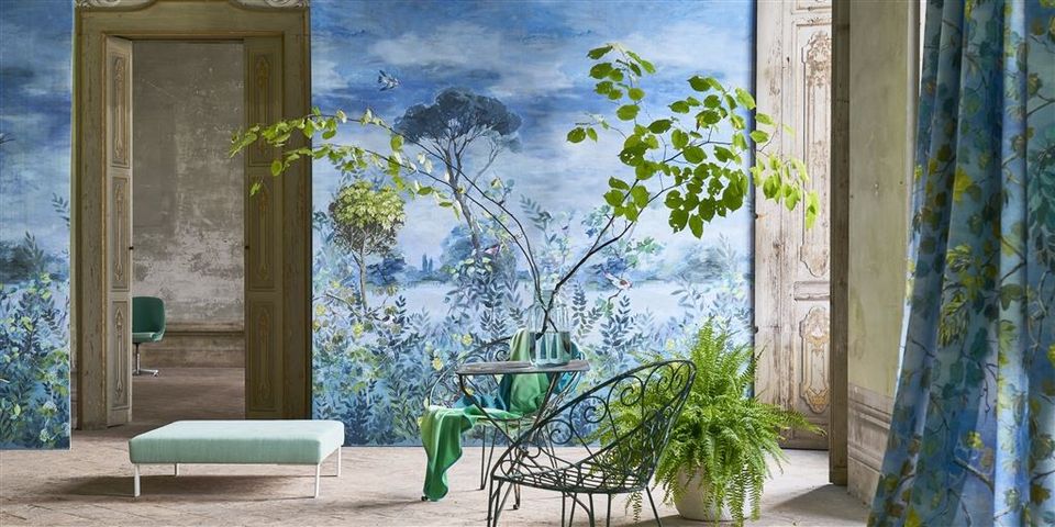 Arrivée dans la petite rue Vide Gousset, c’est la fête chez Designers Guild qui est également éditeur de Christian Lacroix, dont je suis une inconditionnelle. Je suis accueillie par une coupe de champagne et une féerie de couleurs. La nouvelle collection s’inspire des impressionnistes et de la nature, avec des bleus pour « célébrer la joie du ciel d’été » et des couleurs soft pour le nouveau langage des fleurs. Chez Christian Lacroix, des oiseaux, des fleurs et des formes géométriques, sur des velours aux teintes plus foncés, vont venir contraster l’univers de Tricia Guild (la fondatrice de Designers Guild), en sommes une très belle harmonie! A noter également, les créations en céramique de Christian Lacroix inspirées du même univers, que j’ai eu le bonheur de voir aussi au salon Maison et Objet (je vous en reparlerai).